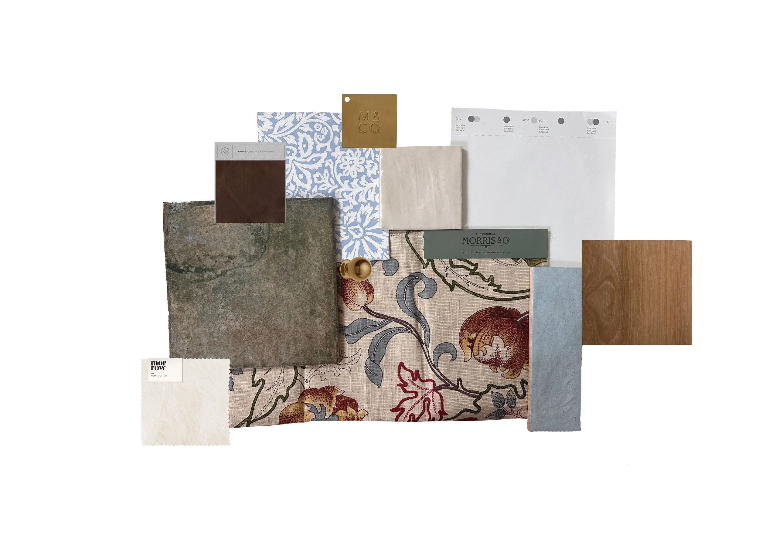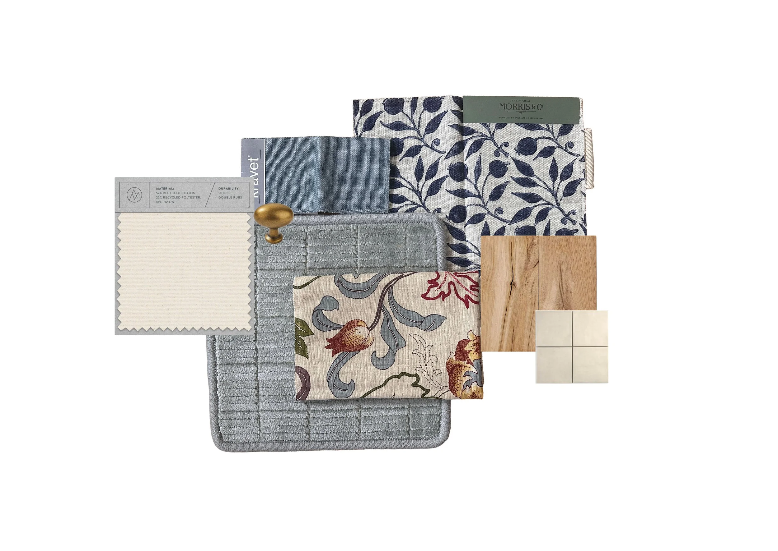 A soft and serene color palette, meant to make you feel relaxed. This mood board is perfectly suited for a cozy sitting room.